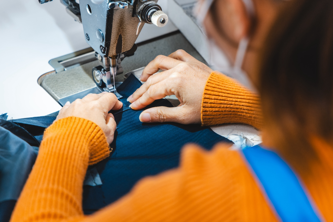 前工程より受け取った裁断済み生地を各パーツに仕上げます。